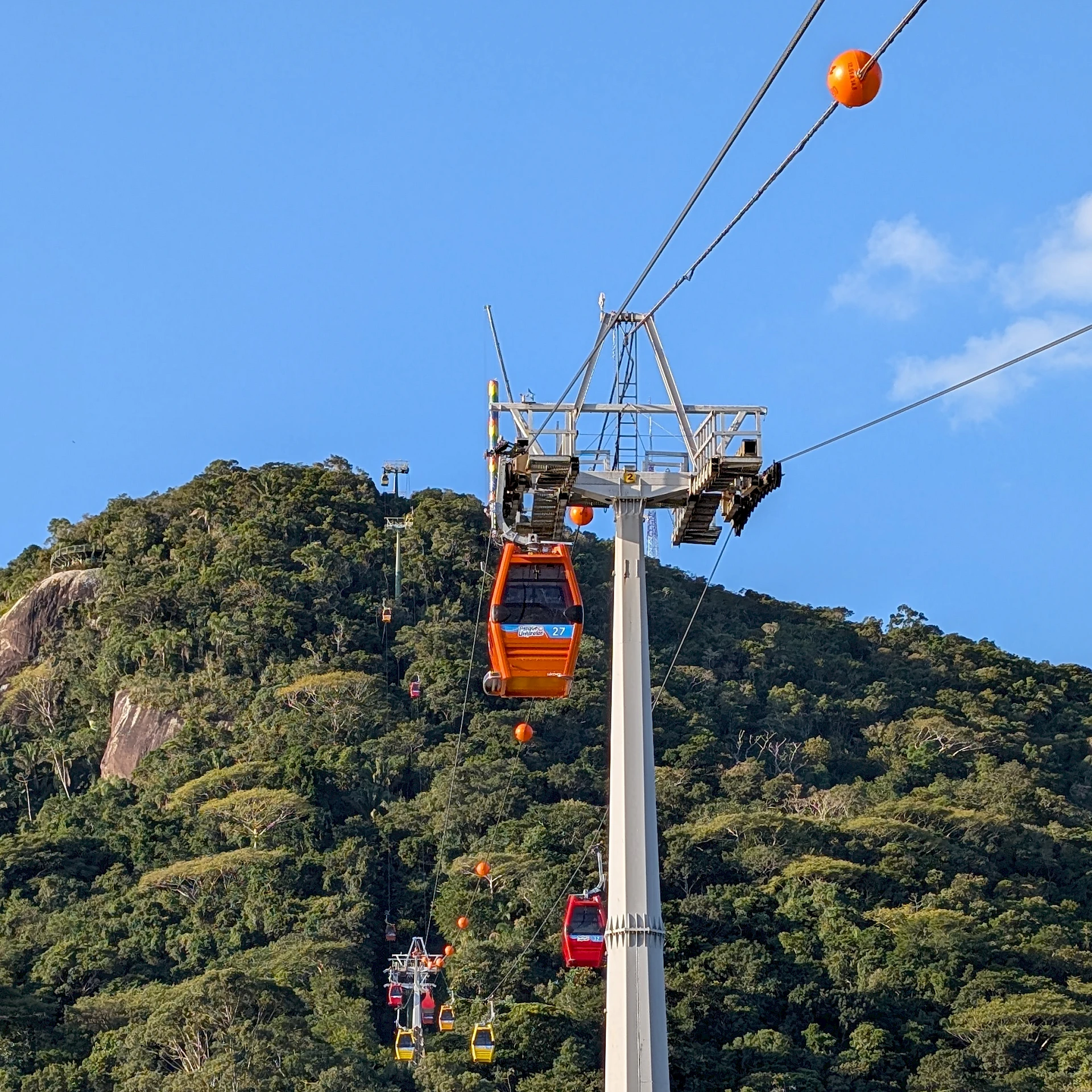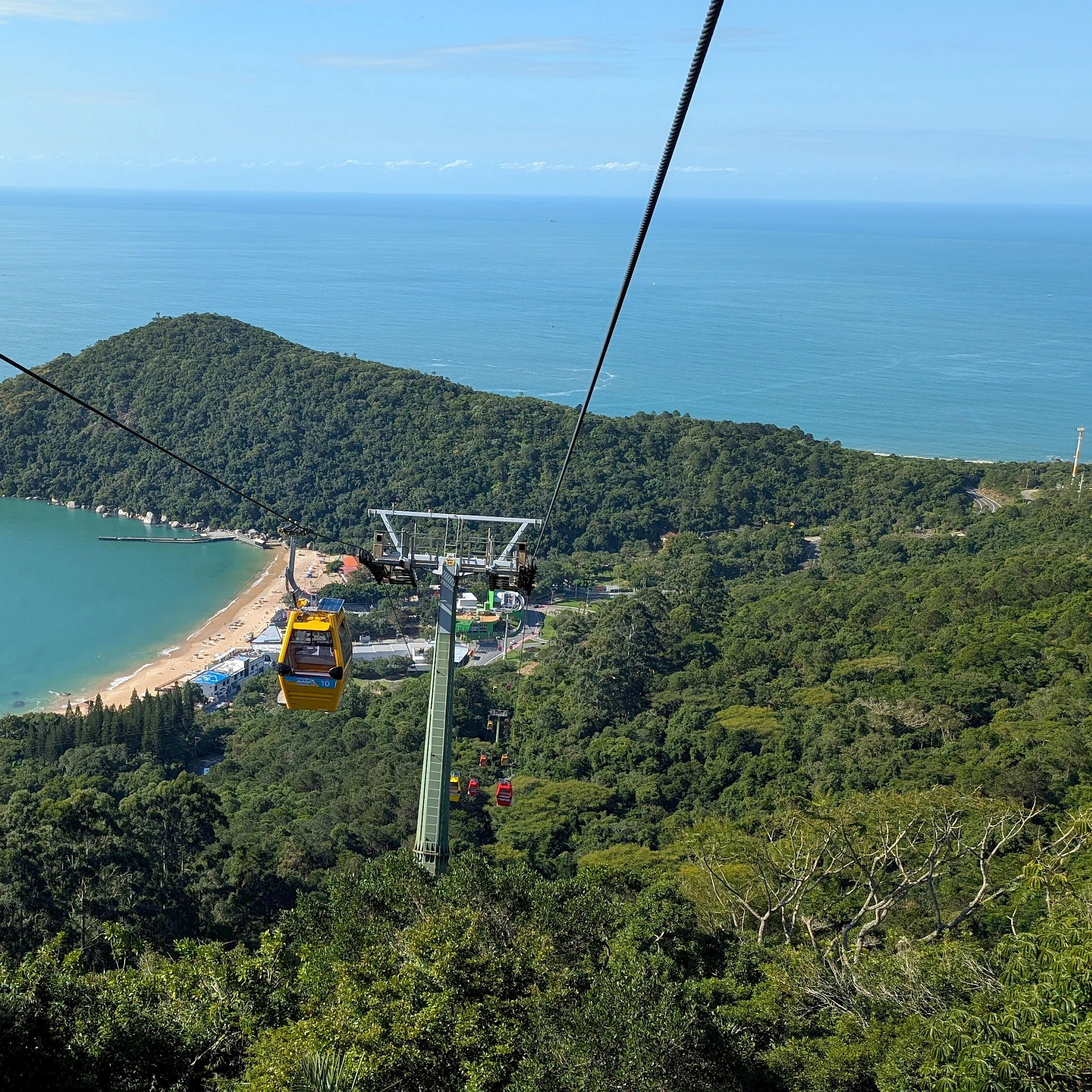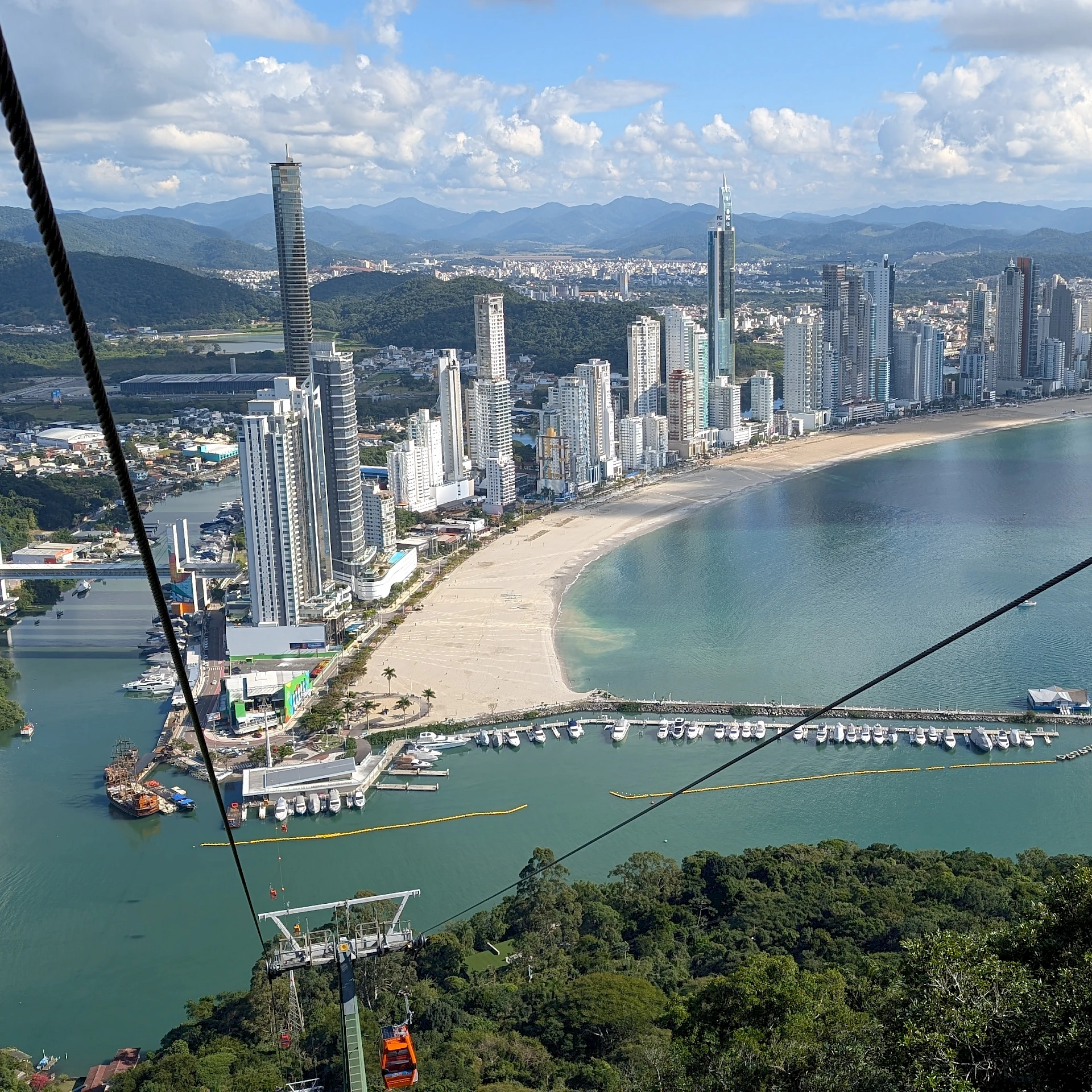 Die Seilbahn verbindet den Stadtstrand Barra Sul mit Laranjeiras und bietet spektakuläre Panoramablicke auf Atlantik, Stadt und Regenwald. Die Strecke ist ca. 3,25 km lang und Teil des beliebten Freizeitparks Parque Unipraias in Balneário Camboriú.