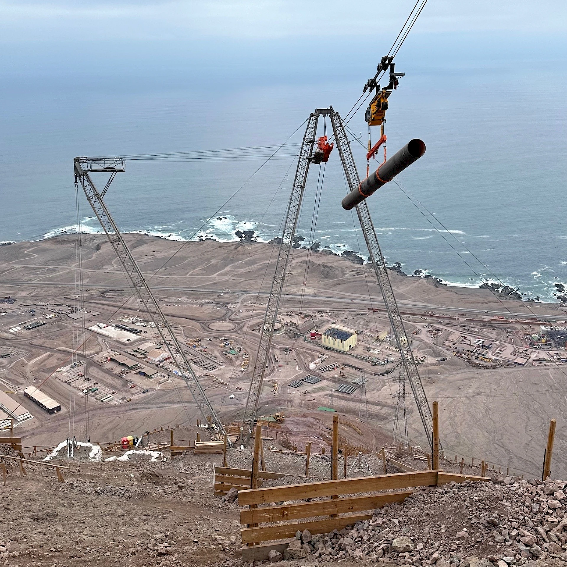 Im Rahmen eines Meerwasser-Entsalzungsprojekts im Norden Chiles wurde ein 13‑Tonnen-Seilkransystem installiert.
